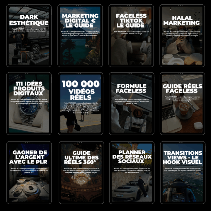 Tu reçois un pack exclusif de 15 produits PLR (Private Label Rights) que tu peux modifier, rebrander et revendre. Une vraie opportunité pour générer tes premiers revenus rapidement.